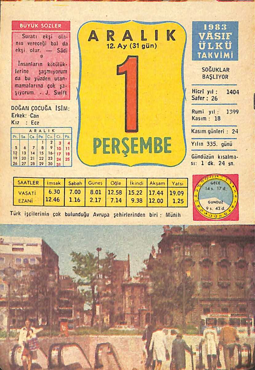 1 Aralık 1983 Takvim Yaprağı - Doğum Günü Hediyesi EFMN14694