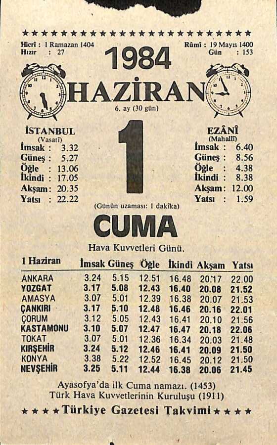 1 Haziran 1984 Takvim Yaprağı - Doğum Günü Hediyesi EFM(N)11454