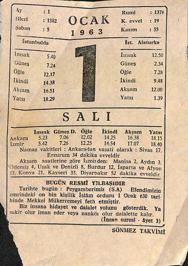 1 Ocak 1963 Takvim Yaprağı - Doğum Günü Hediyesi EFM(N)11419