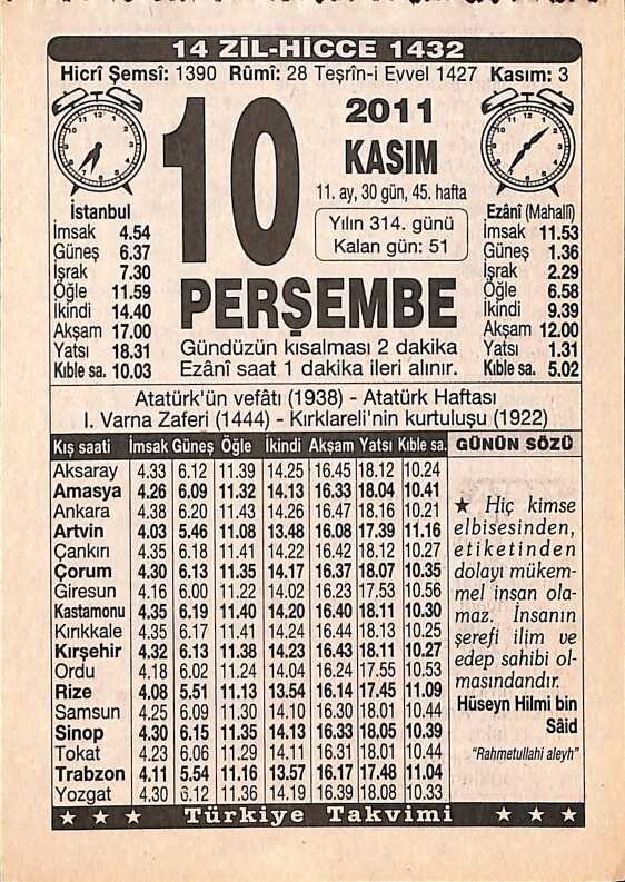 10 Kasım 2011 Takvim Yaprağı - Doğum Günü Hediyesi EFMN15279