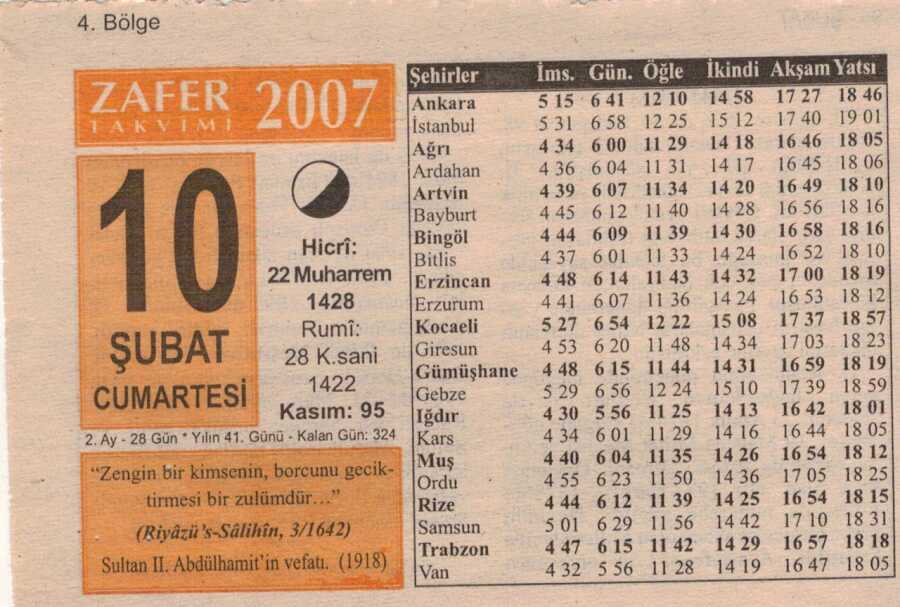 10 Şubat 2007 Takvim Yaprağı EFM(N)5643
