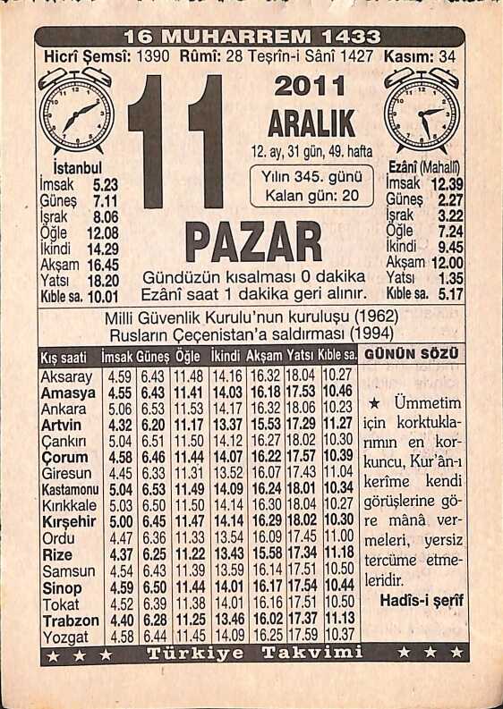 11 Aralık 2011 Takvim Yaprağı - Doğum Günü Hediyesi EFMN15248
