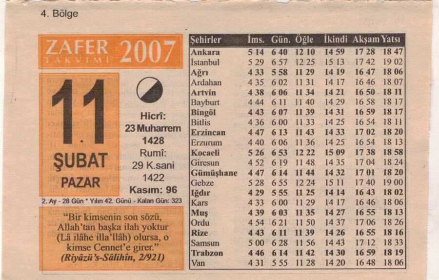 11 Şubat 2007 Takvim Yaprağı EFM(N)5530