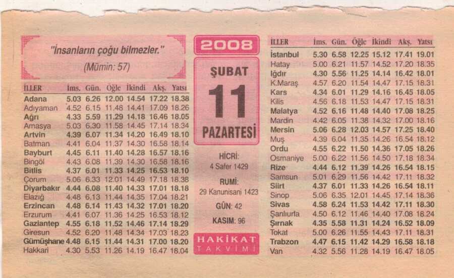 11 Şubat 2008 Takvim Yaprağı EFM(N)5558