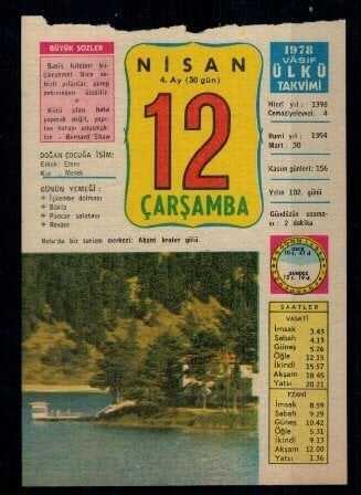 12 Nisan 1978 Vasıf Ülkü Takvimi Yaprağı EFM615