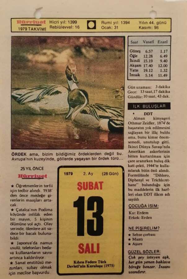 12 Şubat 1979 Takvim Yaprağı - Doğum Günü Hediyesi EFM(N)7598