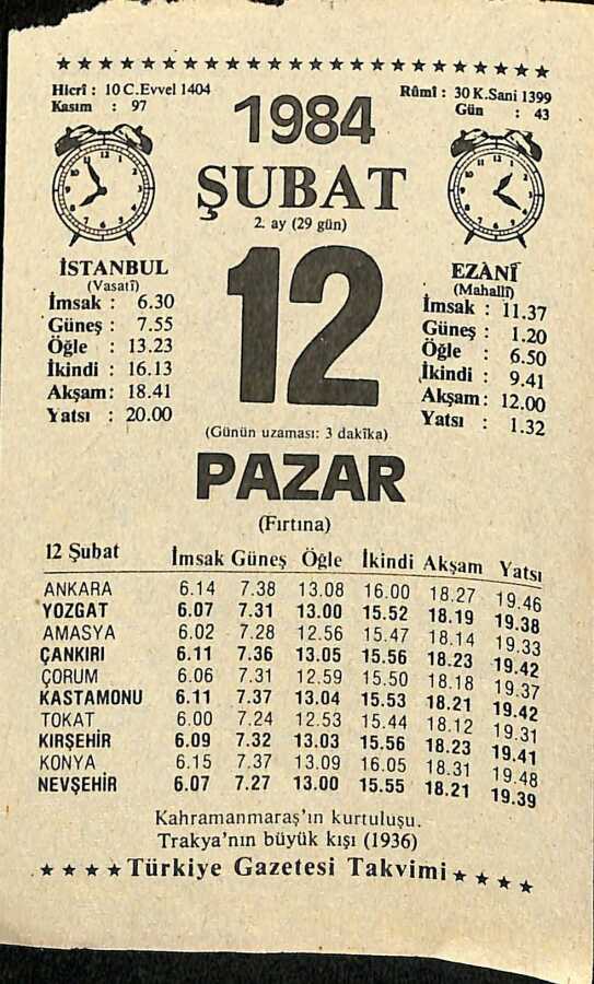 12 Şubat 1984 Takvim Yaprağı - Doğum Günü Hediyesi EFM(N)11802