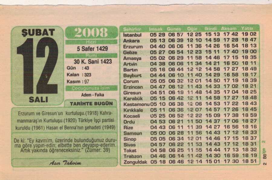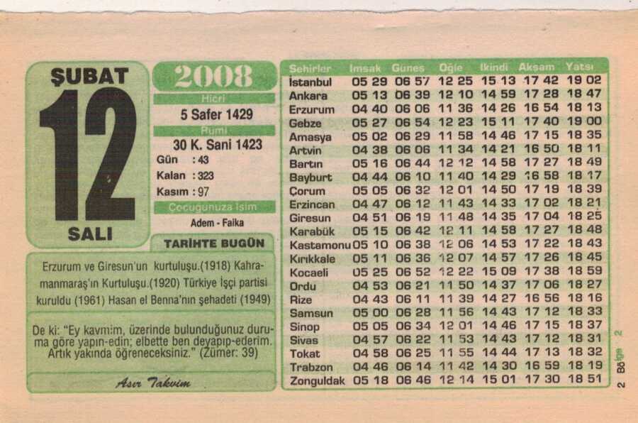12 Şubat 2008 Takvim Yaprağı EFM(N)5588