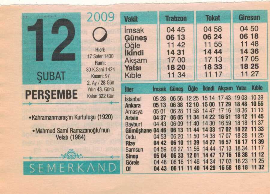 12 Şubat 2009 Takvim Yaprağı EFM(N)5617