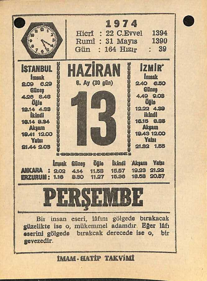13 Haziran 1974 Takvim Yaprağı - Doğum Günü Hediyesi EFM(N)11962
