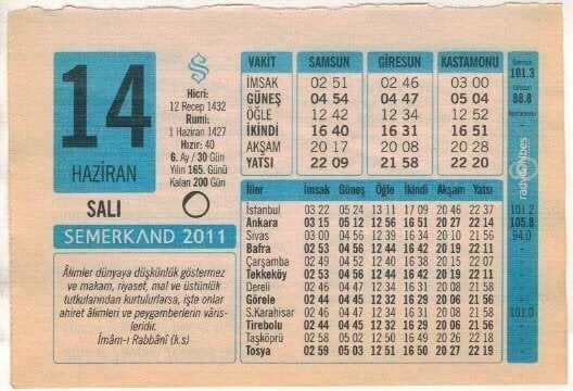 14 Haziran 2011 Takvim Yaprağı EFM(N)1210