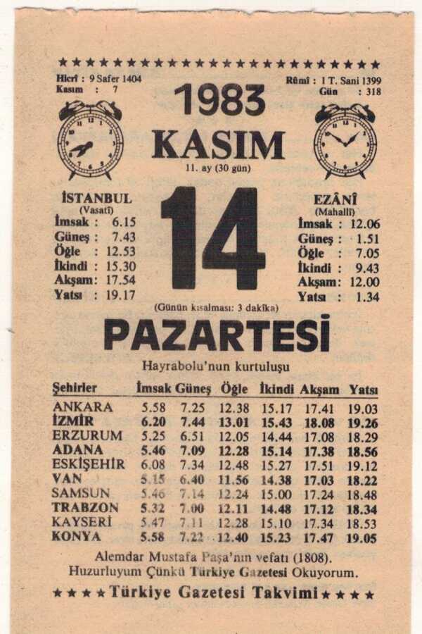 14 Kasım 1983 Takvim Yaprağı EFM(N)3958