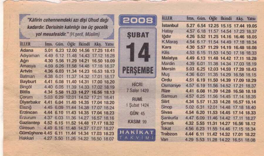 14 Şubat 2008 Takvim Yaprağı EFM(N)5561
