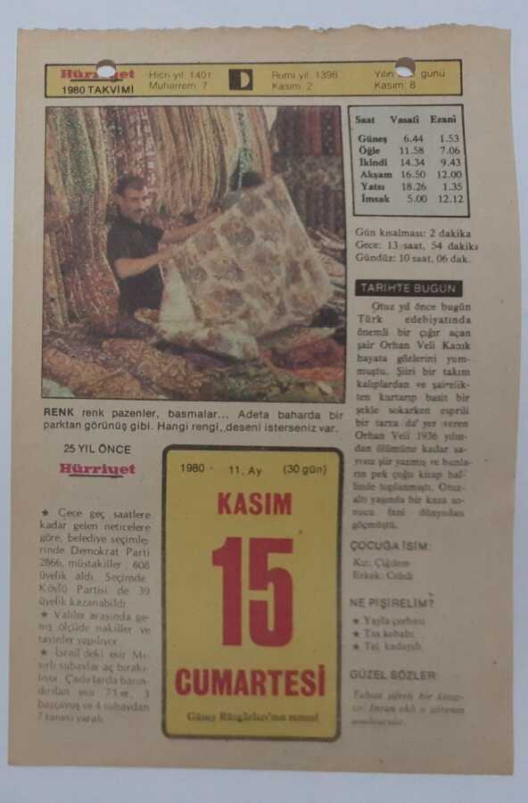 15 Kasım 1980 Takvim Yaprağı - Doğum Günü Hediyesi EFM(N)7201