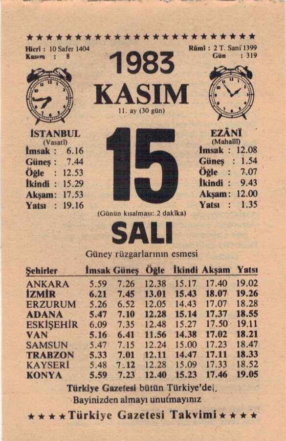 15 Kasım 1983 Takvim Yaprağı EFM(N)3959