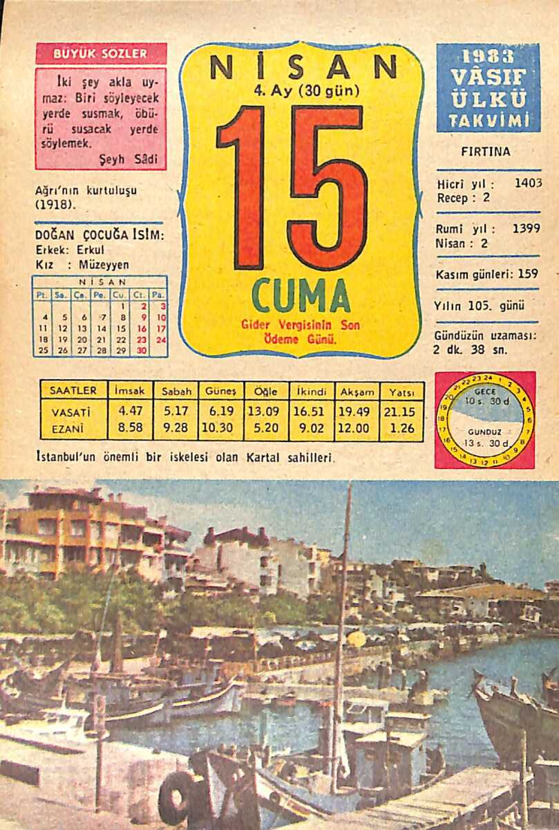 15 Nisan 1983 Takvim Yaprağı - Doğum Günü Hediyesi EFMN15145