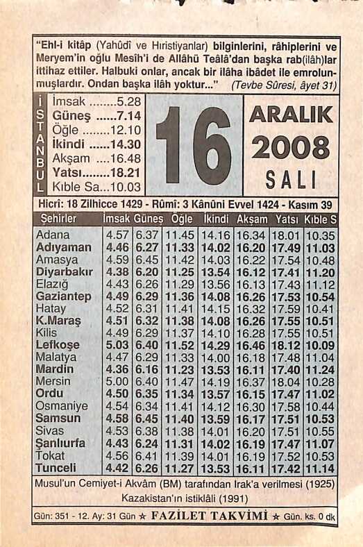 16 Aralık 2008 Takvim Yaprağı - Doğum Günü Hediyesi EFMN15317