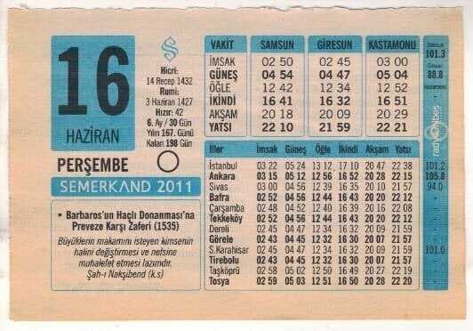 16 Haziran 2011 Takvim Yaprağı EFM(N)1212