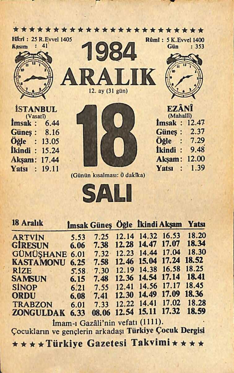 18 Aralık 1984 Takvim Yaprağı - Doğum Günü Hediyesi EFMN14506
