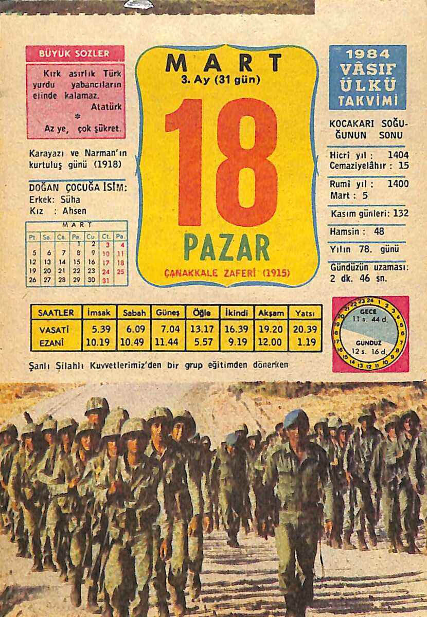 18 Mart 1984 Takvim Yaprağı - Doğum Günü Hediyesi EFMN15205