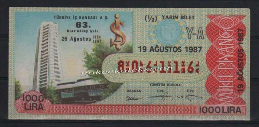 19 Ağustos 1987 Yarım Bilet PYB1639