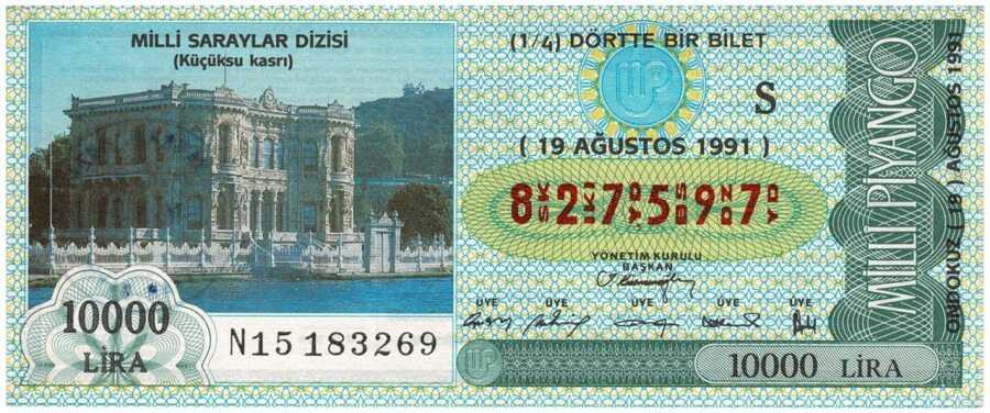19 Ağustos 1991 Çeyrek Bilet PYB3078