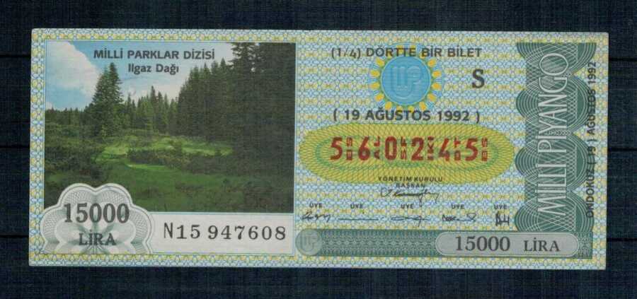 19 Ağustos 1992 Çeyrek Bilet PYB1028