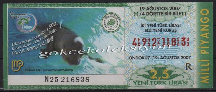 19 Ağustos 2007 Çeyrek Bilet PYB2382