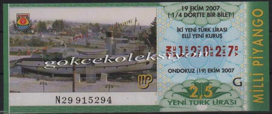 19 Ekim 2007 Çeyrek Bilet PYB2376