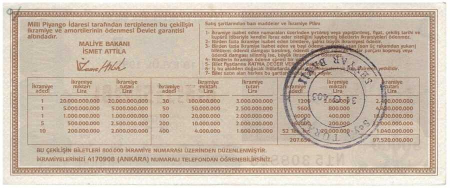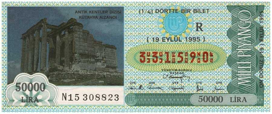19 Eylül 1995 Çeyrek Bilet PYB2979