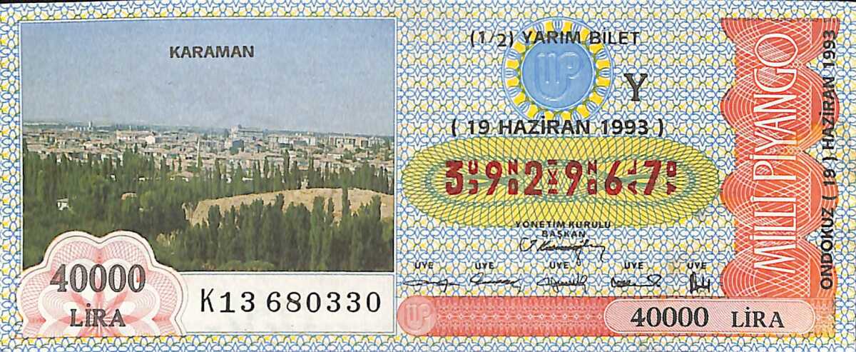 19 Haziran 1993 Piyango Bileti Yarım Bilet PYB6749