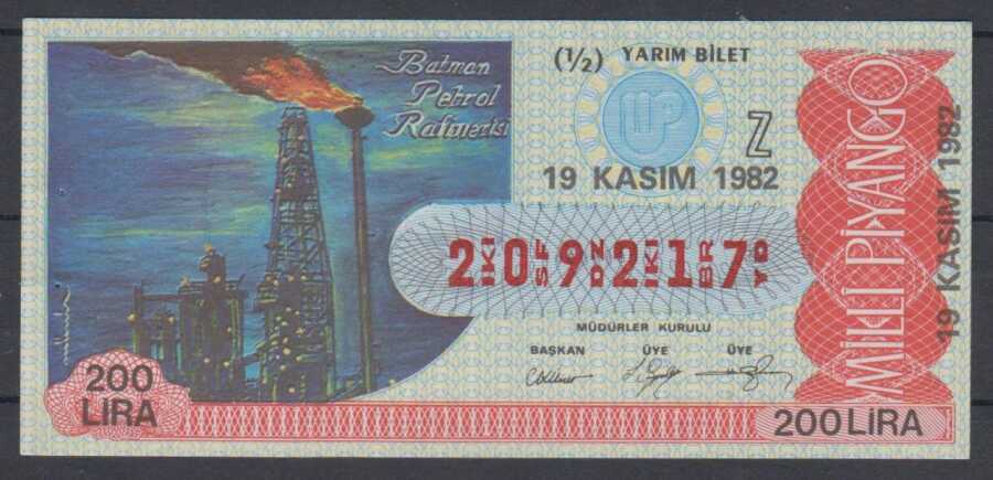 19 Kasım 1982 Piyango Bileti Yarım Bilet - Batman Petrol Rafinerisi PYB145