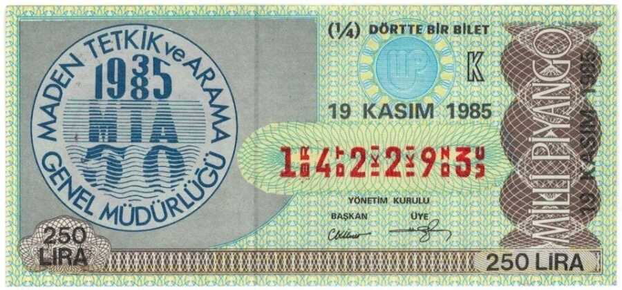 19 Kasım 1985 Piyango Bileti Çeyrek Bilet PYB3350