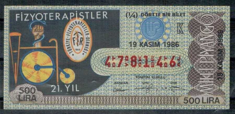 19 Kasım 1986 Çeyrek Bilet PYB246