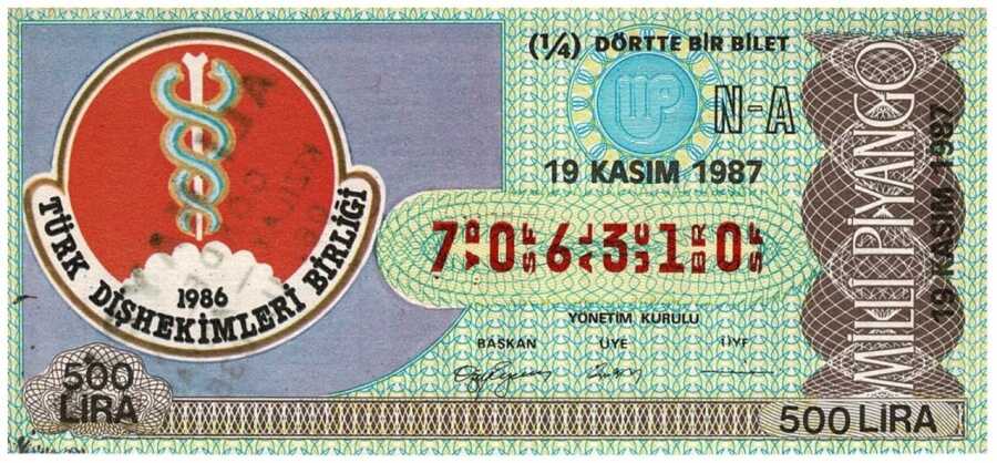19 Kasım 1987 Piyango Bileti Çeyrek Bilet - Türk Diş Hekimleri Birliği PYB3209