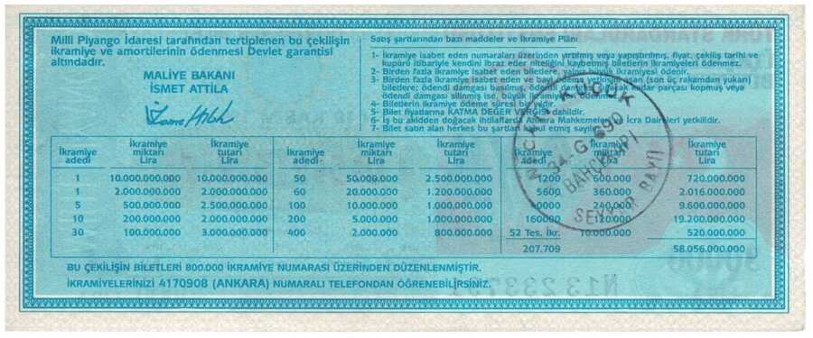 19 Kasım 1994 Çeyrek Bilet PYB2998