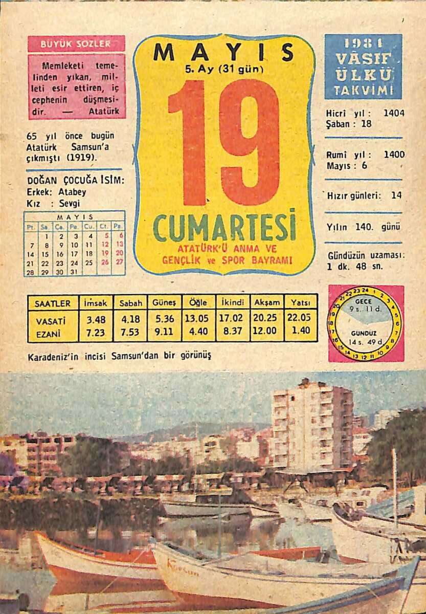 19 Mayıs 1984 Takvim Yaprağı - Doğum Günü Hediyesi EFMN15162