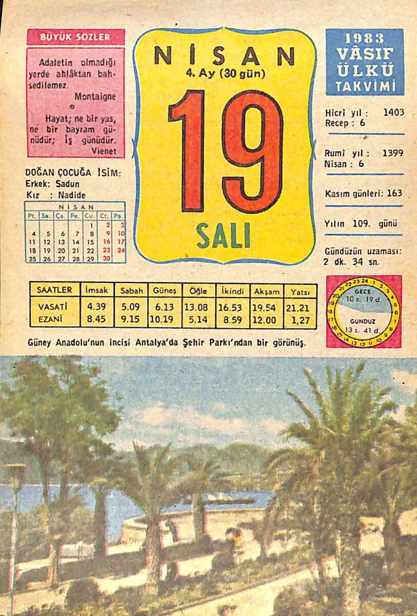 19 Nisan 1983 Takvim Yaprağı - Doğum Günü Hediyesi EFMN15141