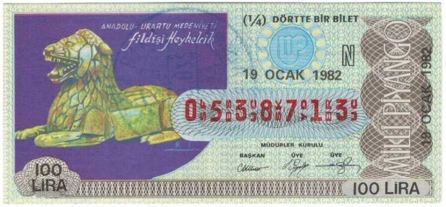 19 Ocak 1982 Piyango Bileti Çeyrek Bilet - Anadolu Urartu Medeniyeti PYB3474