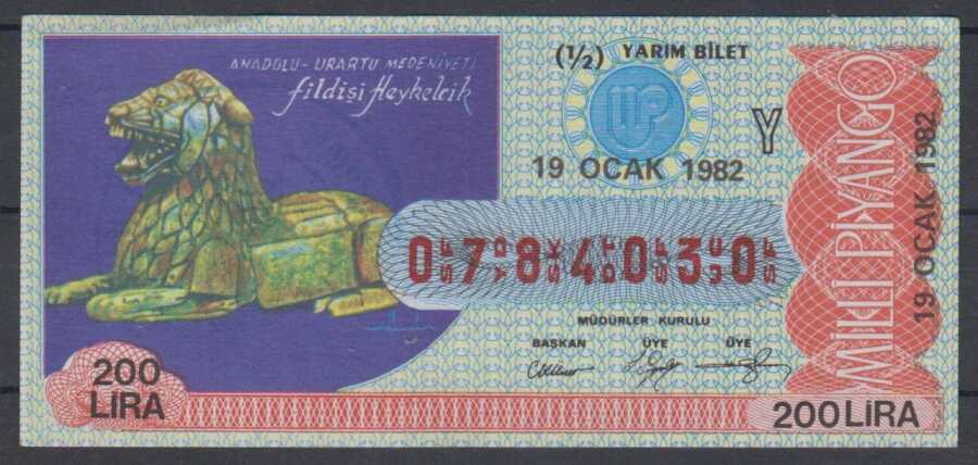 19 Ocak 1982 Piyango Bileti Yarım Bilet PYB134
