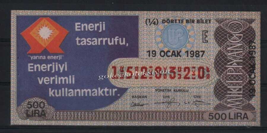 19 Ocak 1987 Piyango Bileti Çeyrek Bilet PYB1698
