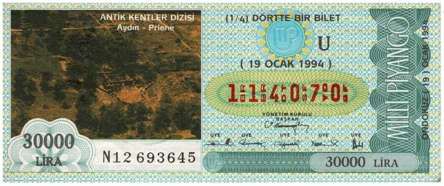 19 Ocak 1994 Çeyrek Bilet PYB3015