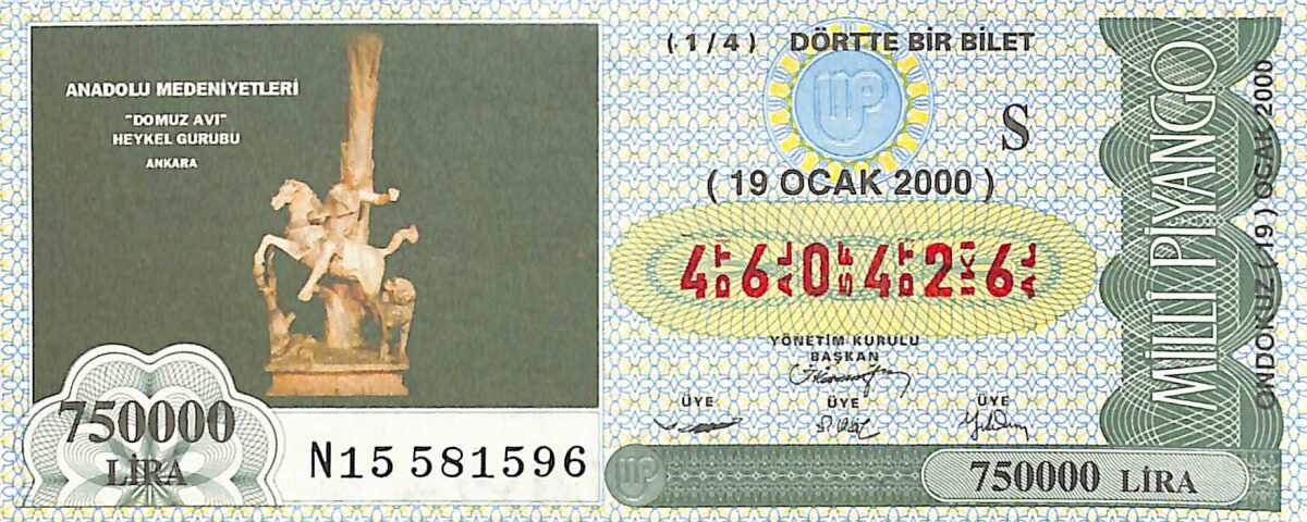 19 Ocak 2000 Piyango Bileti Dörtte Bir Bilet PYB6577
