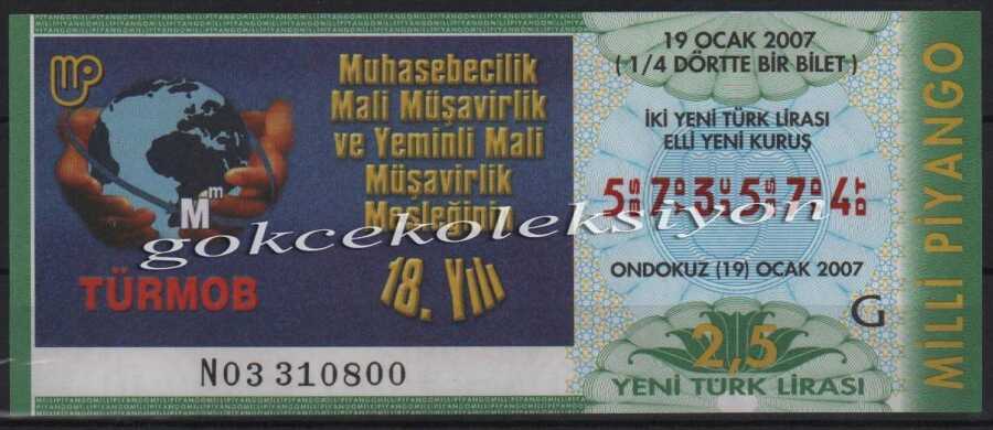 19 Ocak 2007 Çeyrek Bilet PYB2354