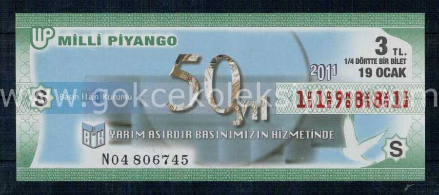 19 Ocak 2011 Çeyrek Bilet PYB1252