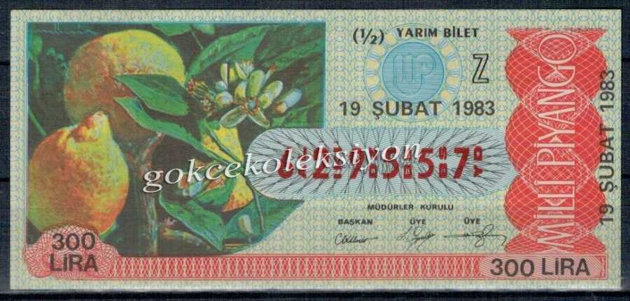 19 Şubat 1983 Yarım Bilet PYB1853