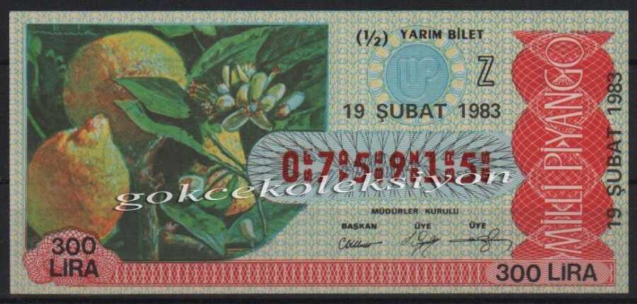 19 Şubat 1983 Yarım Bilet PYB2335
