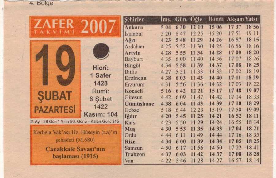 19 Şubat 2007 Takvim Yaprağı EFM(N)5538