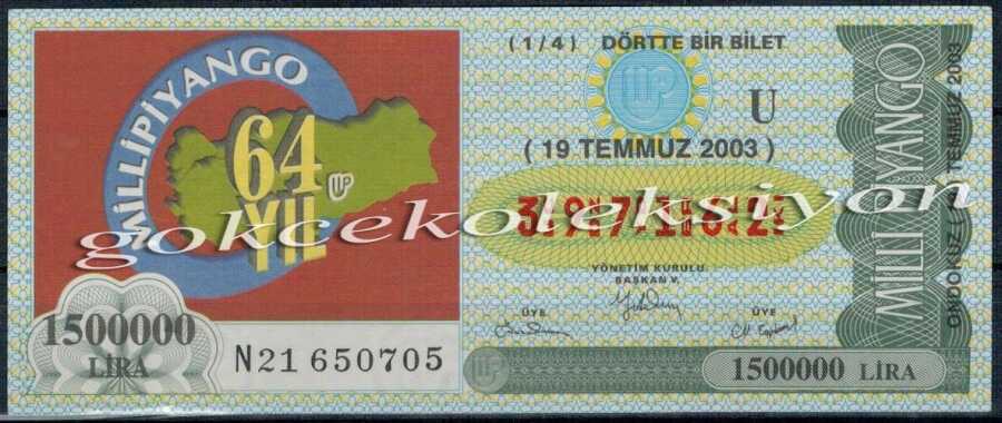 19 Temmuz 2003 Çeyrek Bilet PYB2478