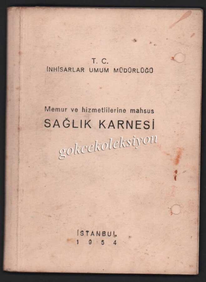 1954 İnhisarlar Müdürlüğü Memur Sağlık Karnesi EFM324